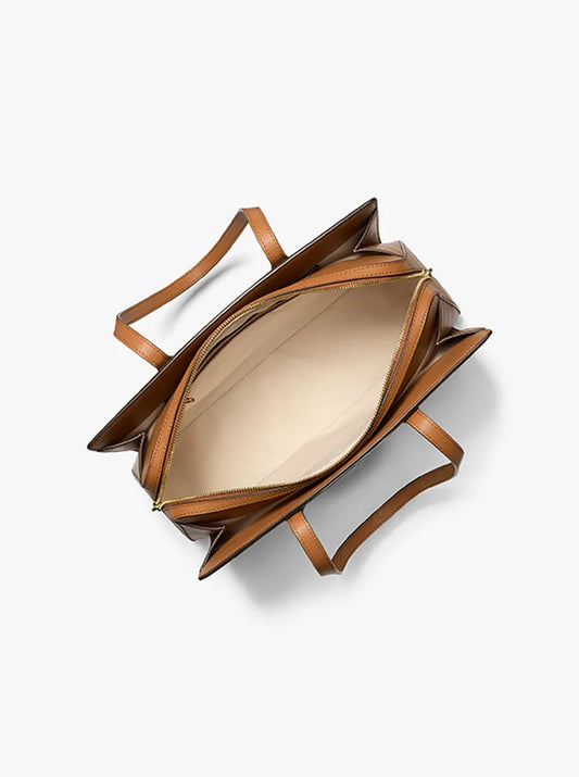 Michael Kors Charlotte Large Logo and Leather Top-Zip Tote Bag