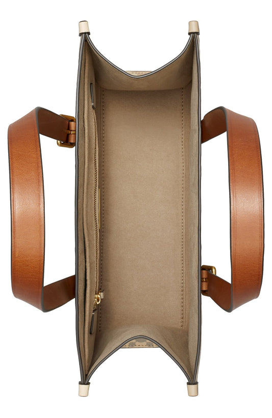 Small T Monogram Contrast Embossed Tote - Longan / New Cream