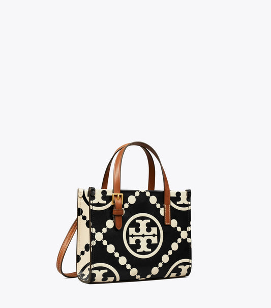 TORY BURCH MINI T MONOGRAM TOTE BAG - BLACK