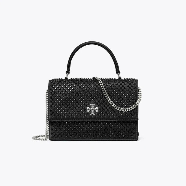 Tory Burch Mini Kira Satin Embellished Top-Handle Crossbody Black